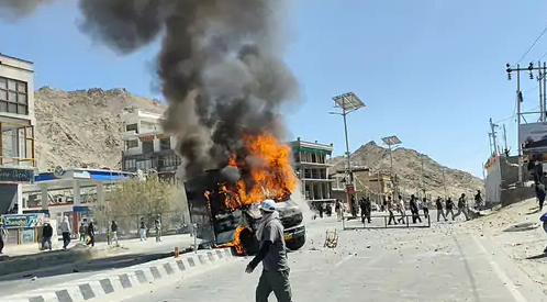 केंद्र शासित प्रदेश लद्दाख को पूर्ण राज्य का दर्जा देने की मांग को लेकर लेह में बुधवार को हिंसक प्रदर्शन हुआ।