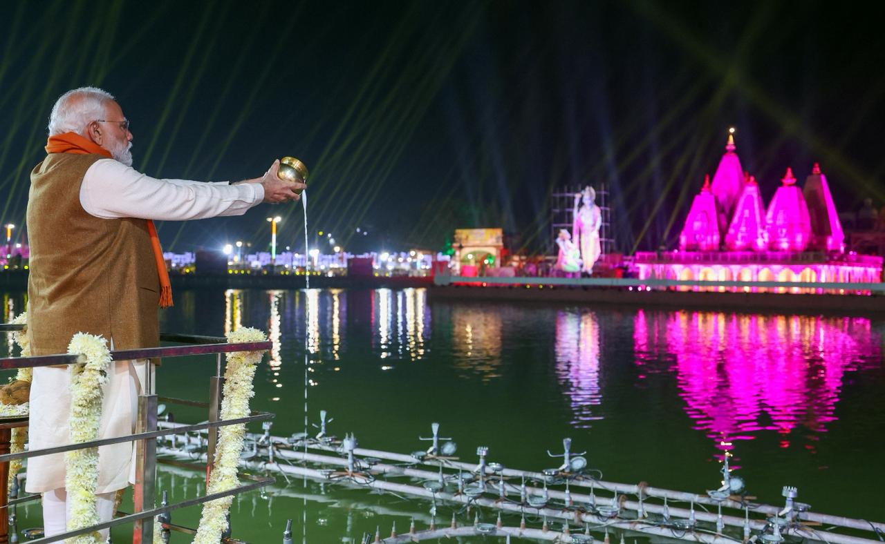 प्रधानमंत्री नरेंद्र मोदी ने मंगलवार को कुरुक्षेत्र में चल रहे अंतर्राष्ट्रीय गीता महोत्सव-2025 में ब्रह्मसरोवर के पावन तट पर मंत्रोच्चारण के बीच महाआरती की और देशवासियों की उन्नति और तरक्की के लिए प्रार्थना की। उन्होंने दीपशिखा प्रज्वलित कर विधिवत रूप से महाआरती का शुभारम्भ किया। इस अवसर पर हरियाणा के राज्यपाल प्रो. असीम कुमार घोष, मुख्यमंत्री नायब सिंह सैनी, गीता मनीषी स्वामी ज्ञानानंद महाराज भी मौजूद रहे। प्रधानमंत्री के आगमन से कुरुक्षेत्र के इतिहास के साथ एक नया अध्याय जुड़ गया। यह अवसर इसलिए भी खास है कि प्रधानमंत्री के मार्गदर्शन से ही हरियाणा सरकार द्वारा लगातार गीता के संदेश को दुनिया के कोने-कोने तक पहुंचाने के लिए लगातार अंतर्राष्ट्रीय गीता महोत्सव का आयोजन किया जा रहा है।