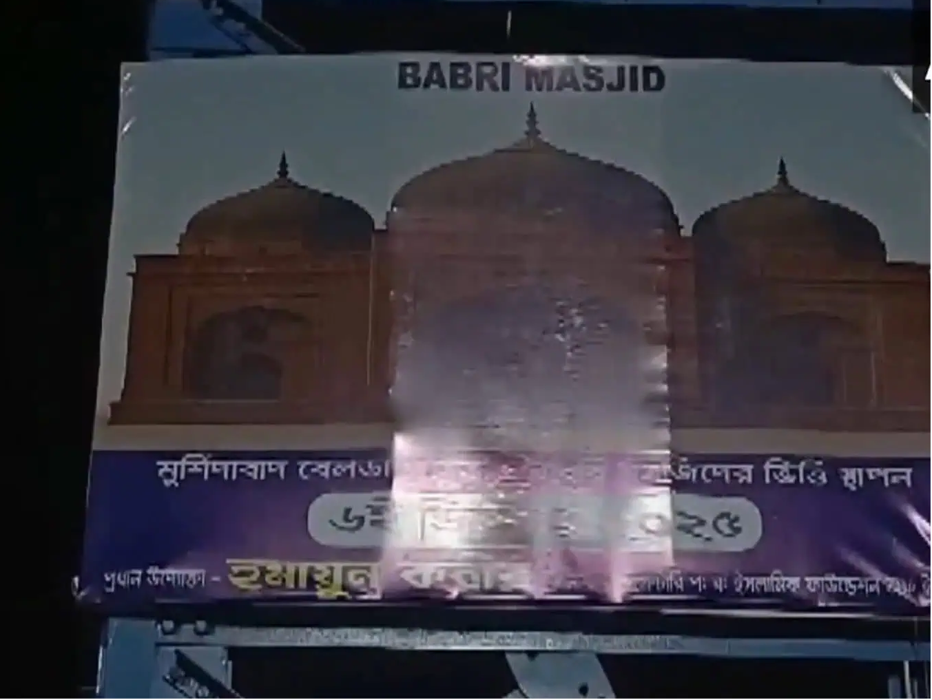 पश्चिम बंगाल के मुर्शिदाबाद जिले में मंगलवार देर रात बाबरी मस्जिद के शिलान्यास के पोस्टर लगाए गए।