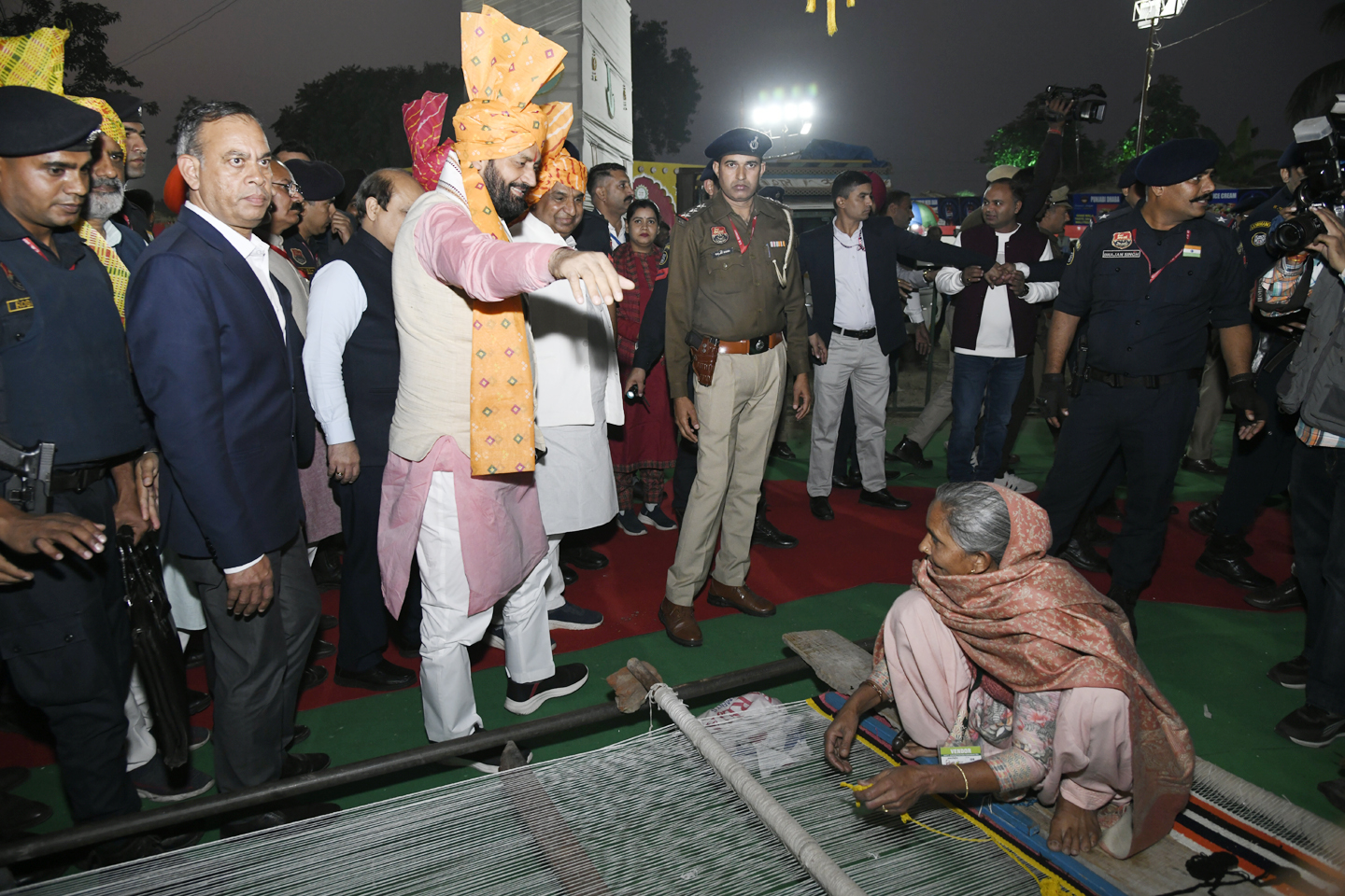 मुख्यमंत्री नायब सिंह सैनी बुधवार को अंतर्राष्टï्रीय गीता महोत्सव में सूचना, जनसंपर्क एवं भाषा विभाग की राज्यस्तरीय प्रदर्शनी का उदघाटन करने के उपरांत अपने विचार व्यक्त कर रहे थे। इस दौरान मुख्यमंत्री नायब सिंह सैनी ने राज्यस्तरीय प्रदर्शनी का उदघाटन किया। इसके उपरांत मुख्यमंत्री नायब सिंह सैनी ने विभिन्न विभागों द्वारा उपलब्धियों और भावी योजनाओं को लेकर लगाए गए 25 स्टॉलों का अवलोकन किया। मुख्यमंत्री ने एक-एक विभाग की योजनाओं के बारे में फीडबैक ली और प्रदर्शनी के तथ्यों, साज-सज्जा और आधुनिक तकनीकी के बारे में प्रशंसा भी की। इसके बाद मुख्यमंत्री ने अधिकारियों और गणमान्य लोगों के साथ समुह यादगारी चित्र करवाया और हरियाणा पैवेलियन का अवलोकन भी किया।