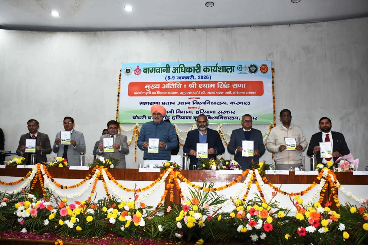 यहां के महाराणा प्रताप उद्यान विश्वविद्यालय व प्रदेश के बागवानी विभाग द्वारा चौधरी चरण सिंह हरियाणा कृषि विश्वविद्यालय के सहयोग से आज सीएसएसआईआर में बागवानी अधिकारियों के लिए आयोजित दो दिवसीय कार्यशाला का उद्घाटन हरियाणा के किसान एवं कृषि कल्याण मंत्री श्याम सिंह राणा द्वारा किया गया। इस मौके पर उन्होंने कहा कि प्रदेश के किसान फसल विविधीकरण अपनाकर बागवानी फसलों की ओर बढ़ रहे हैं। प्रदेश करीब 4 लाख 18 हजार 500 हेक्टेयर क्षेत्र में बागवानी फसलों का उत्पादन कर रहा है। उन्होंने कहा कि प्रदेश के फल एवं सब्जी के उत्कृष्ट केंद्रों पर 14 बागवानी विज्ञान केंद्र स्थापित किए जाएंगे।