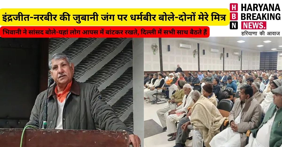 भिवानी में भाजपा सांसद धर्मबीर सिंह ने केंद्रीय राज्य मंत्री राव इंद्रजीत व कैबिनेट मंत्री राव नरबीर की जुबानी जंग पर बयान दिया। उन्होंने कहा कि मेरी दोनों से मित्रता हैं। ये तो लोग यहां पता नहीं क्यों आपस में बांटकर रखते हैं। हम जब दिल्ली में सेंट्रल हॉल में या विधानसभा में बैठते हैं, तो पक्ष-विपक्ष हम सभी इकट्‌ठे बैठते हैं।